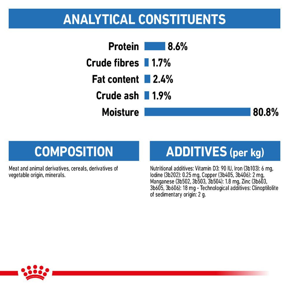 Maintaining a healthy weight is vital for your dog's continued vitality and wellbeing. For dogs carrying extra weight, the right diet can help to support effective weight management, as well as healthy bones and joints. ROYAL CANIN Light Weight Care Loaf is complete and balanced nutrition that is specifically tailored for dogs with a tendency to gain weight. This product is suitable for adult dogs of all shapes and sizes.